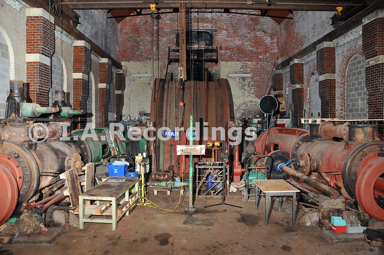 The horizontal double acting South Winder by Markham Co. Ltd (1922), under renovation. Taken during the NAMHO 2009 Conference visit to Pleasley Colliery, more details on their web site www.pleasley-colliery.org.uk