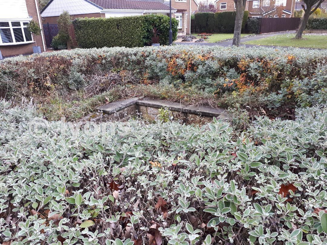 looking inside the flower bed, well stocked but neglected, there is probably an access point to the shaft in centre.
