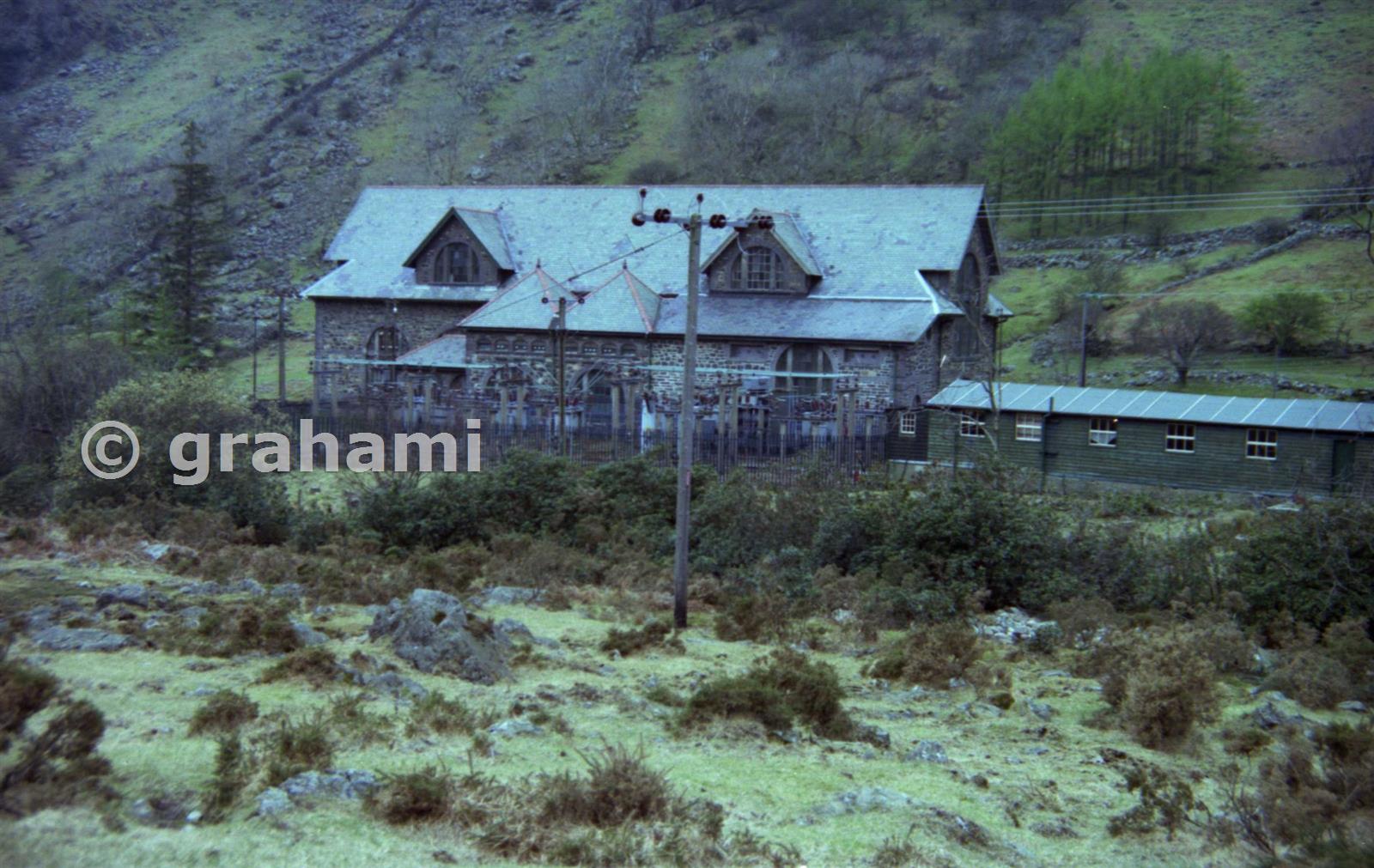 Note the original switchgear bay in the centre, with the later extensions to the left (small) and the right (large). Modern sub-station in foreground.