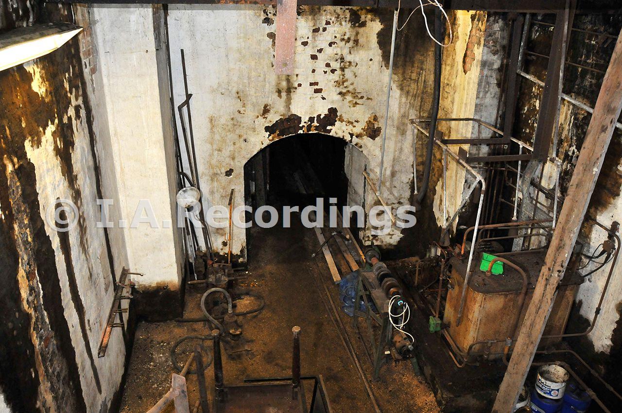 Basement area under the South Winder - the winding drum is through the archway. Taken during the NAMHO 2009 Conference visit to Pleasley Colliery, more details on their web site www.pleasley-colliery.org.uk