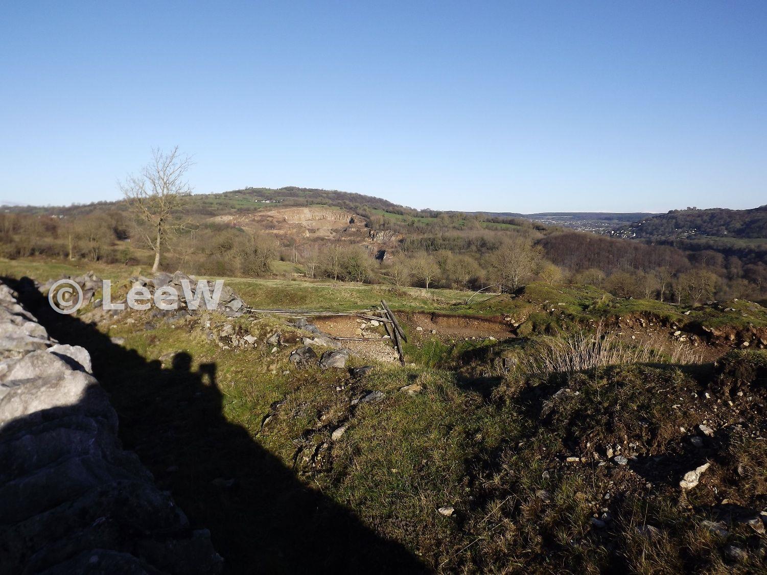 View of the collapsed shaft to the southeast end of the vein, and possibly also on Old Tail Edge Vein. Unsure if the ruined wall is part of a coe and or ruined belland yard (December 2012)