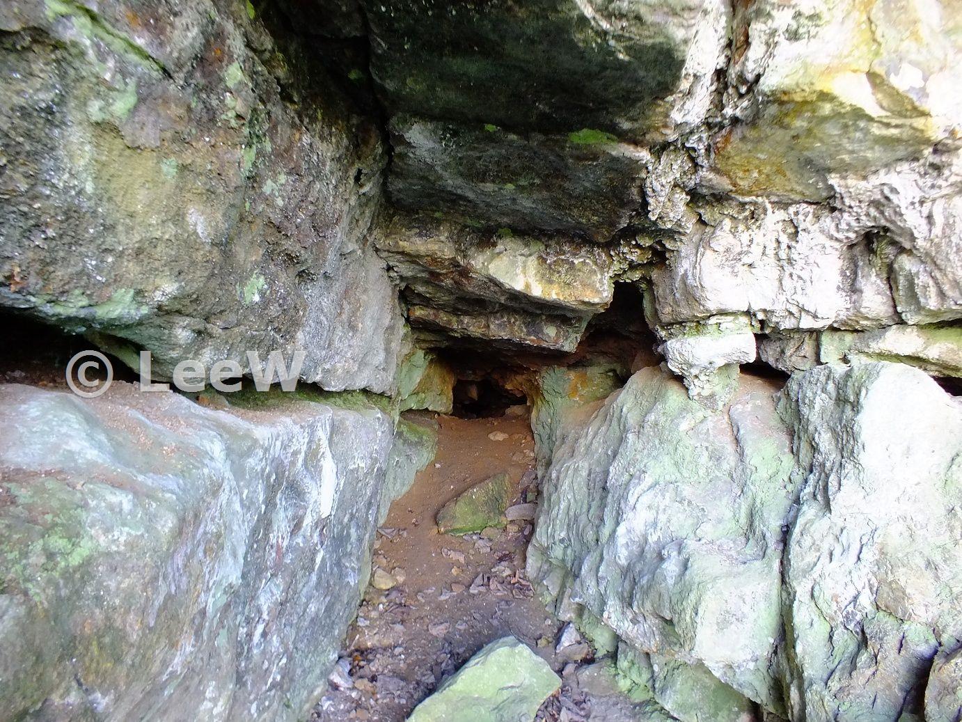 This is situated to the south of the footbridge in the outcrop. The entrance is part silted up.