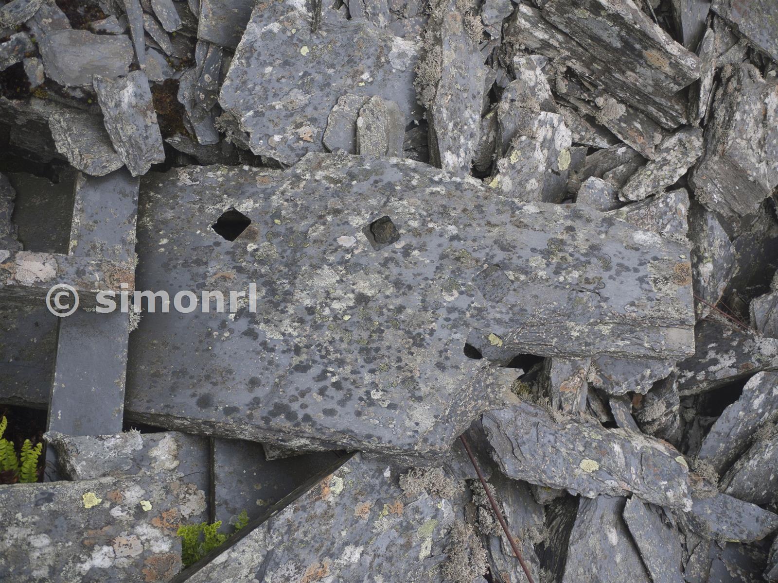 Near the main mill area we found many of these blocks of slate with perfectly square holes punched in them. Rhiwbach slate mine May 2012