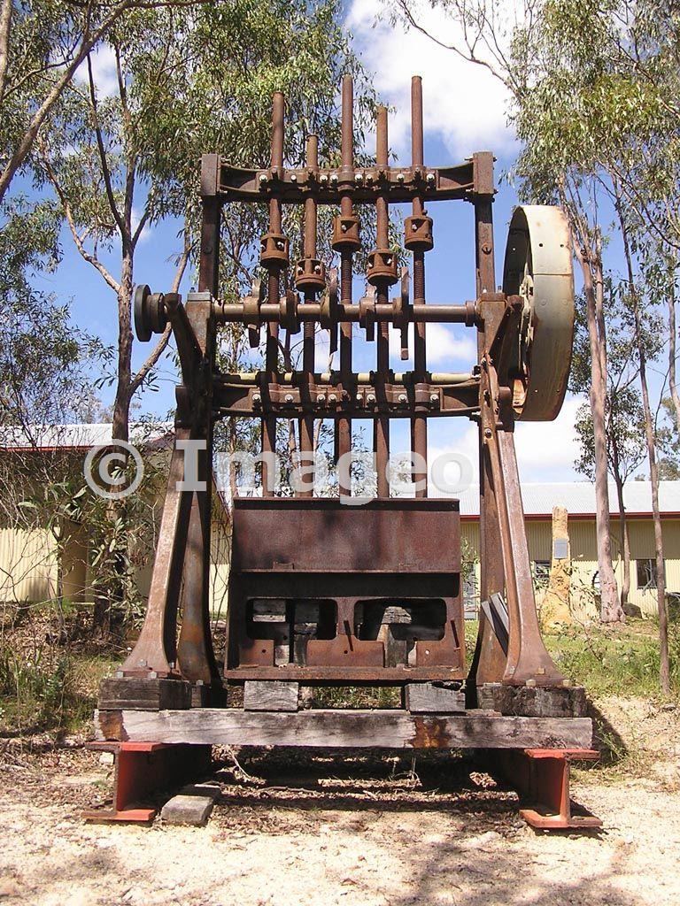A 5 head stamp originally destined for the Palmer goldfield but diverted to Herberton and eventually donated by Don Fry to the Herberton mining centre. This is in exceptional condition and there's a lot of spare equipment lying nearby.