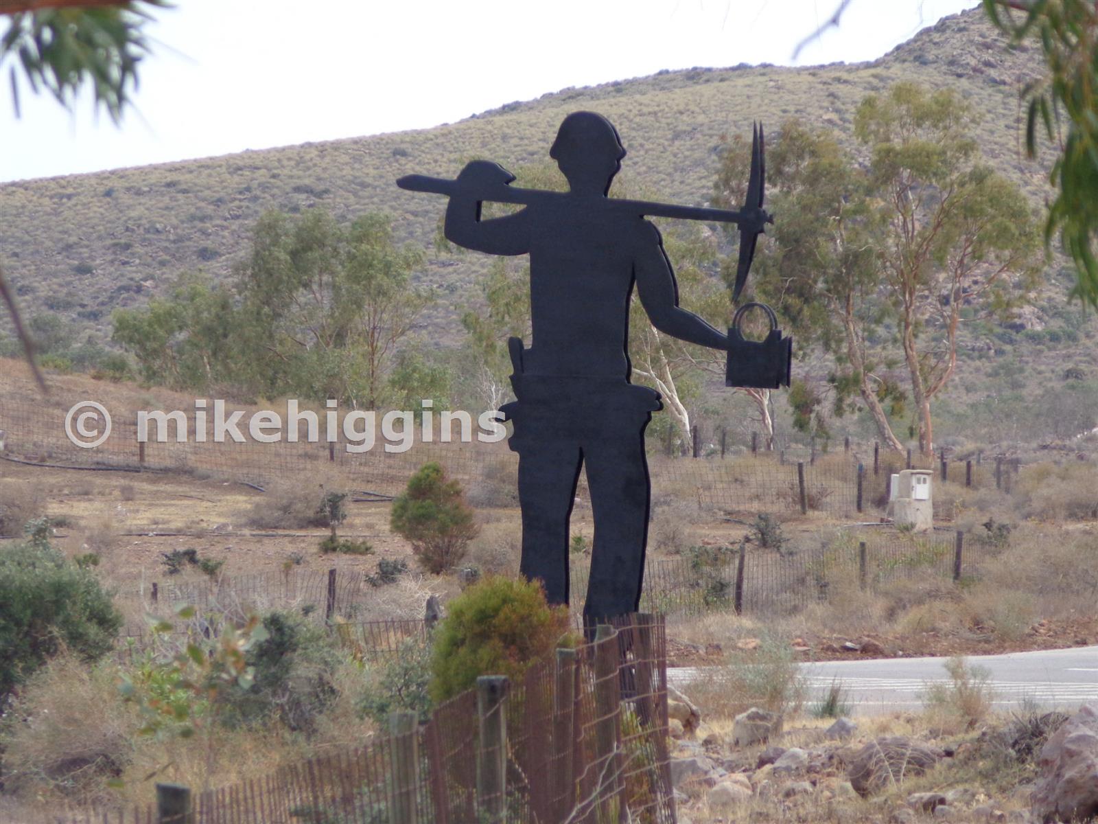 Statue of the silhouette of a miner by the roadside at the entrance to the village