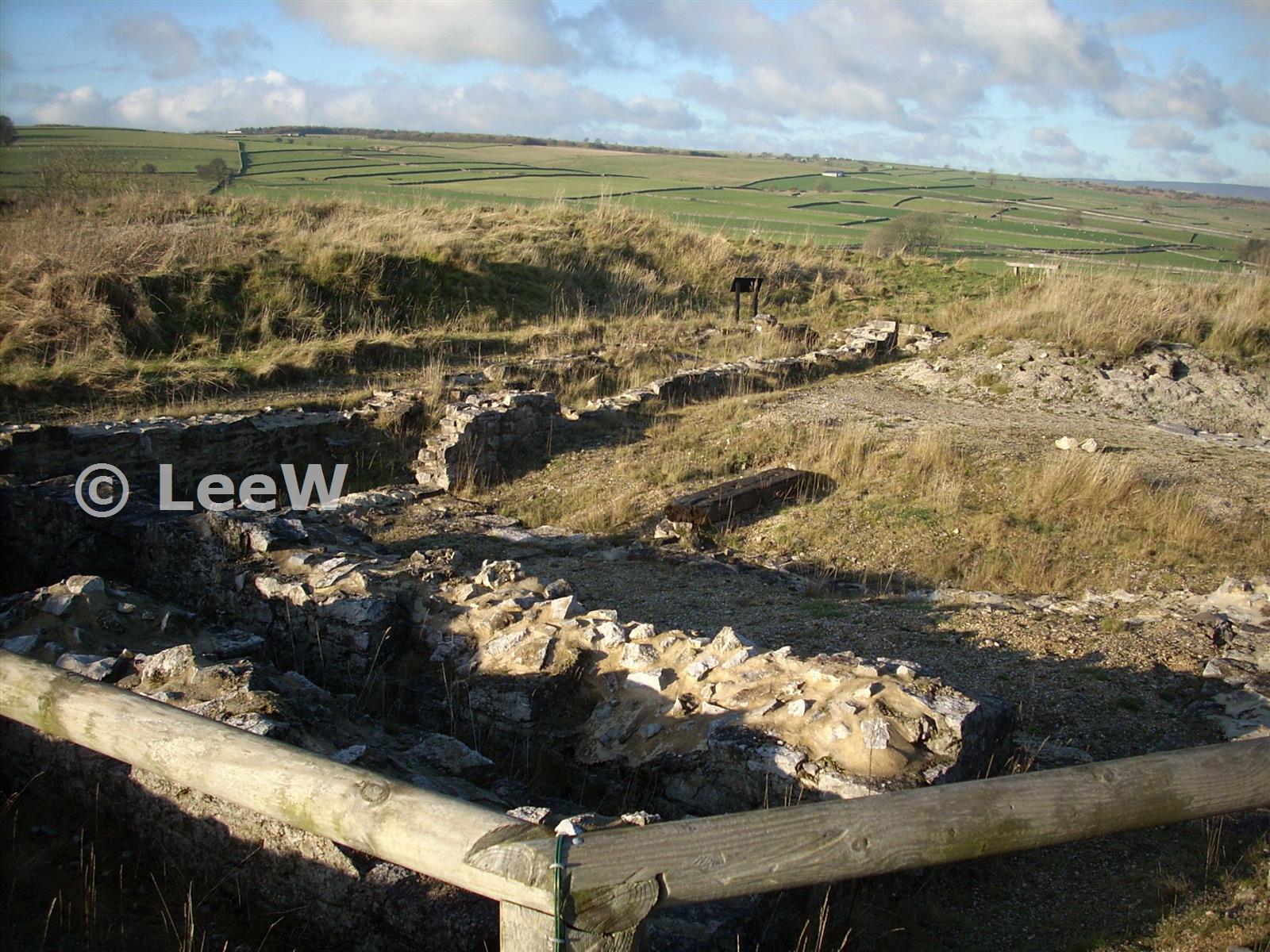 View showing remains of steam engine house to the left and ore processing area to the right (Dec 2009)