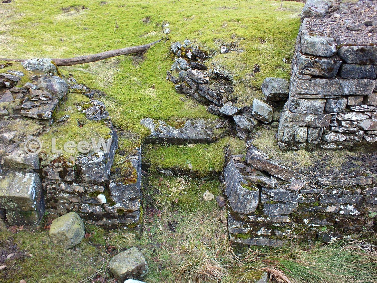 Steps down to the level entrance. The stone blocks of the arch can be seen on the left
