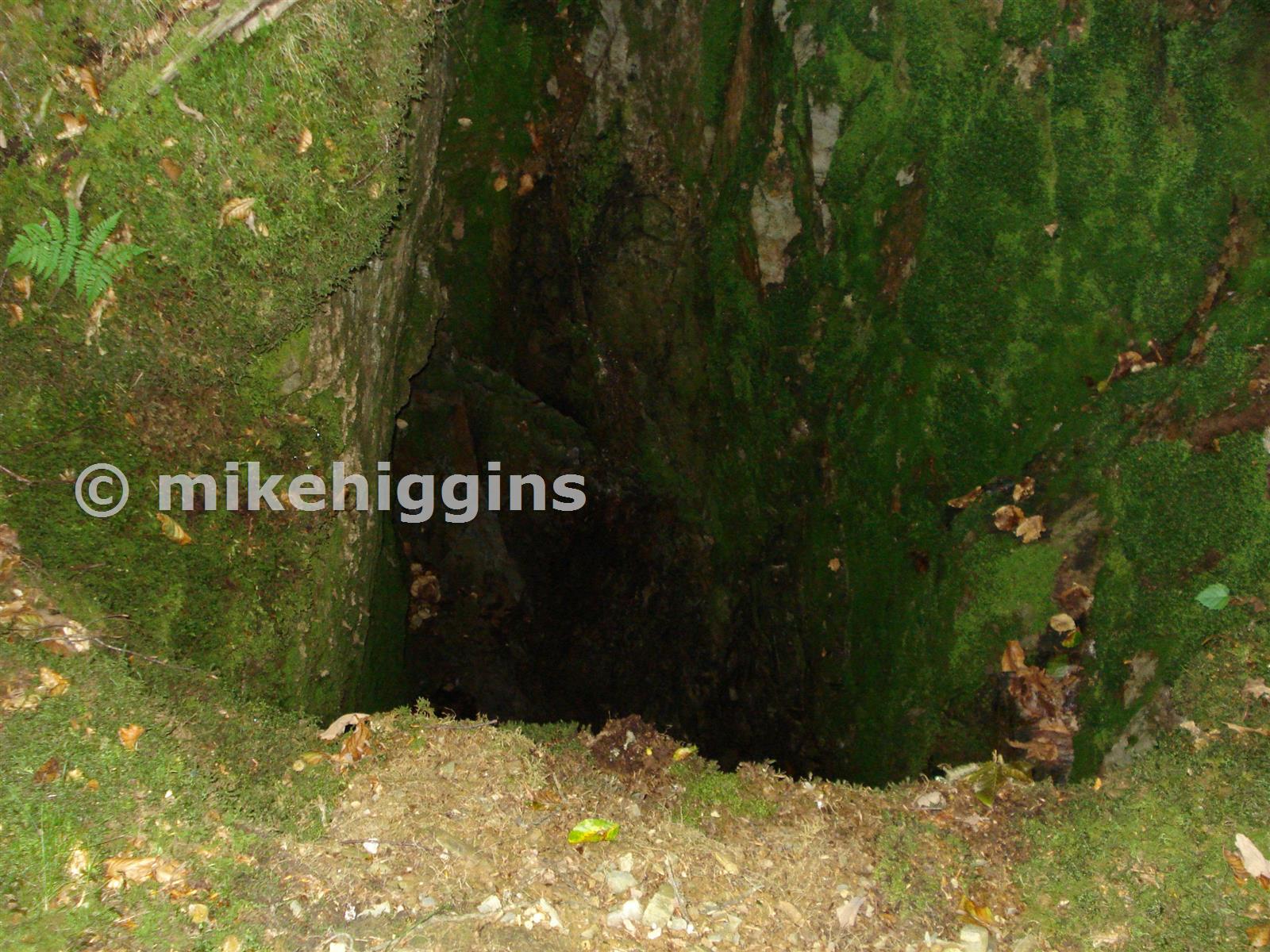 Small open stope below the mine adjacent to the footpath up the hill from Tre Taliesin