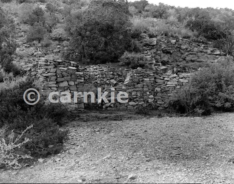 WIDE-ANGLE VIEW OF THE BEESH LIGAII BIGHAN, SHOWING STORAGE ROOM (CENTER OF PHOTOGRAPH) AND HOIST ROOM (RIGHT CENTER OF PHOTOGRAPH), LOOKING SOUTHWEST Courtesy Library of Congress, Prints & Photographs Division, HAER, Reproduction number HAER ARIZ,1-TENPO.V,1-3