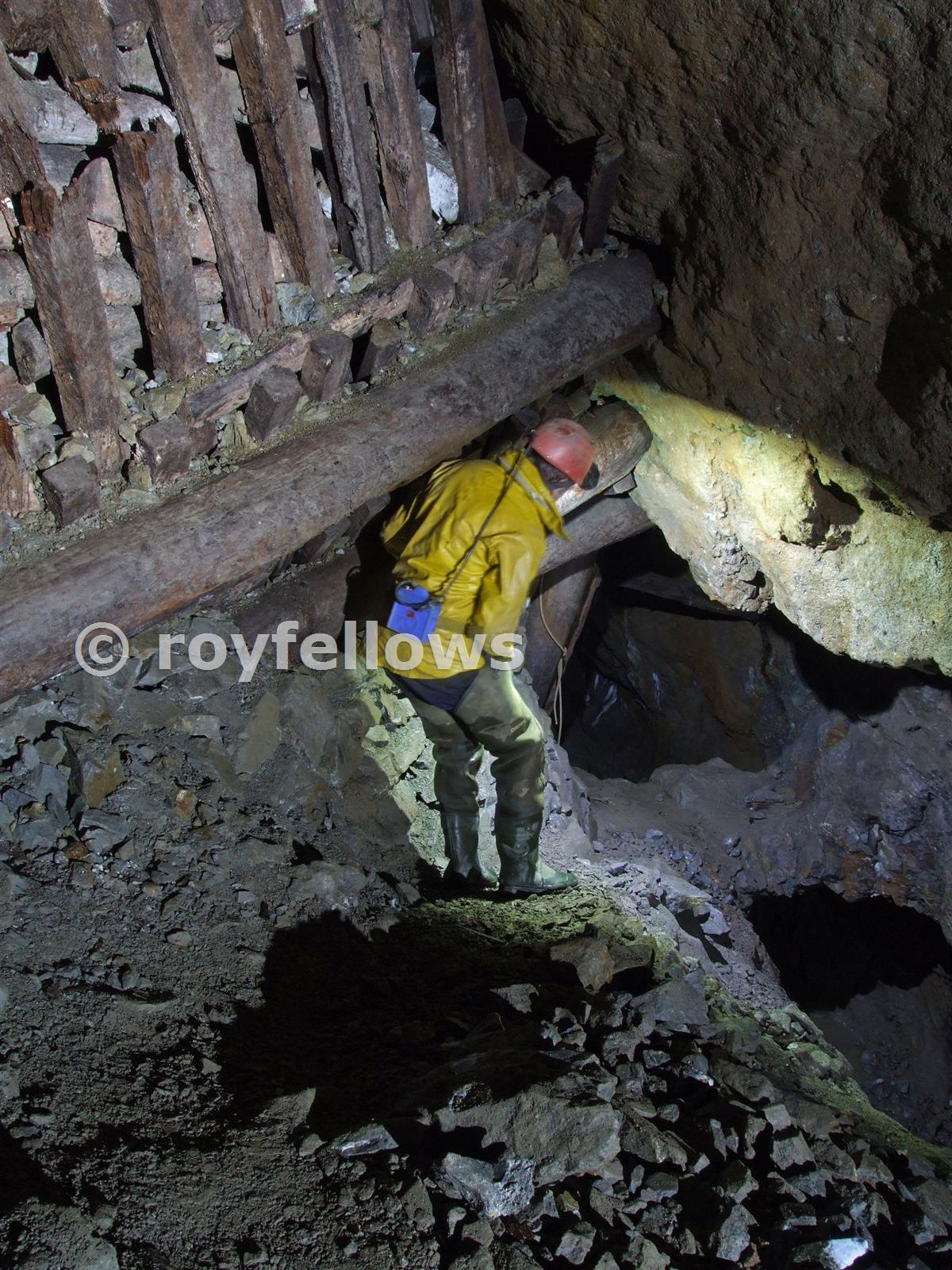 Climbing up past the stull is possible to get this view. Note slightly sagging timber above the figure
