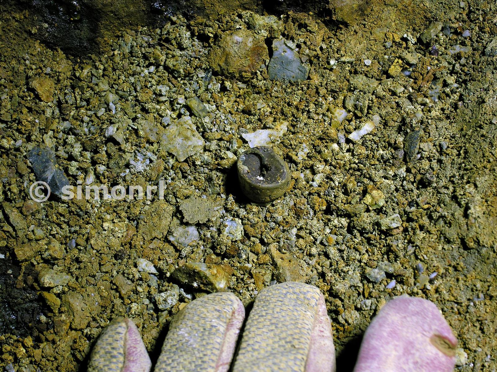 A tiny tallow candle stump on the xx fathom level, the gloved hand is providing scale.