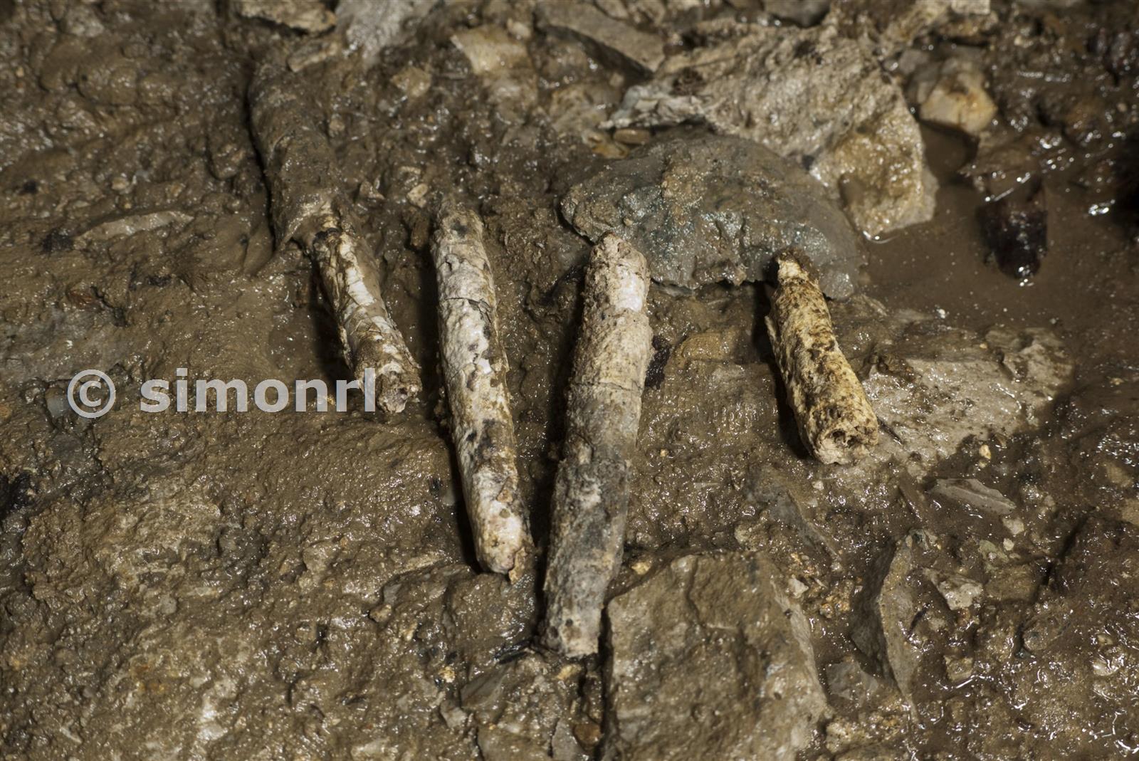 Tallow candles, 230 foot level near foot of climbing shaft. Snake Lead Mine May 2011