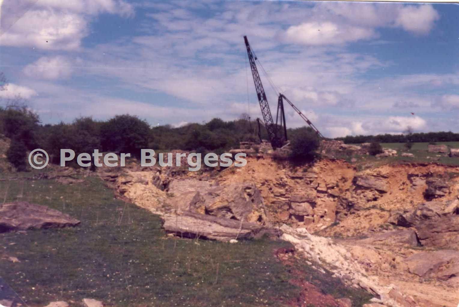 Crane at Taynton Quarries, 1979. Not in use at the time.