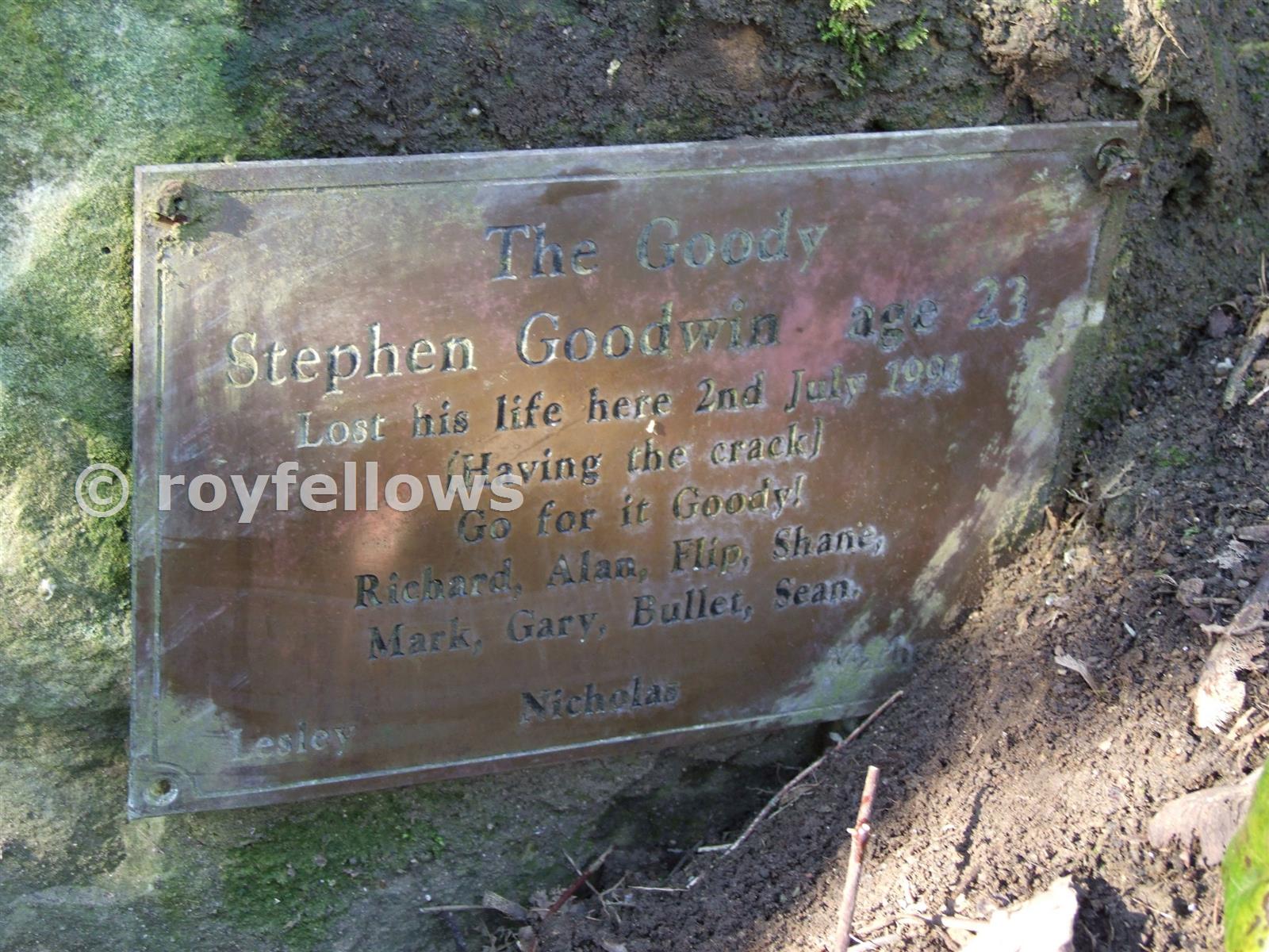 A plaque in memory of Stephen Goodwin who was killed by rockfall in the mine, as was Leslie Wheeler in the same complex due to the same cause, these events were probably contributory to all of the Upperwood Road adits being sealed.