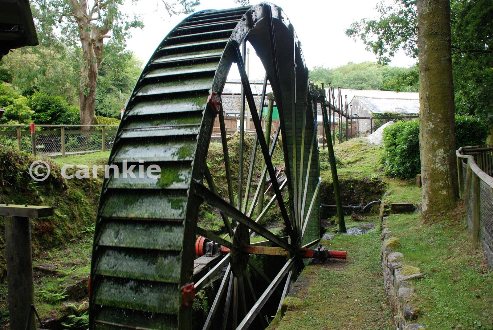 The clay that came to the works to be processed was mined over half a mile away at the Wheal Martin pit. The clay and slurry was pumped from the pit using this wheel. The wheel is a pitch back water wheel, 35 ft in diameter. It was cast by Charlestown Foundary and erceted at WM before 1884. It continued to power pumps until 1940 when it ceased work and was fully restored in in 1976.