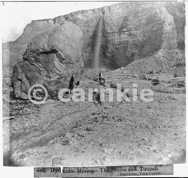 Hydraulic mining - the big boulder, Kentucky Claim, Timbuctoo LoC REPRODUCTION NUMBER: LC-USZ62-27449