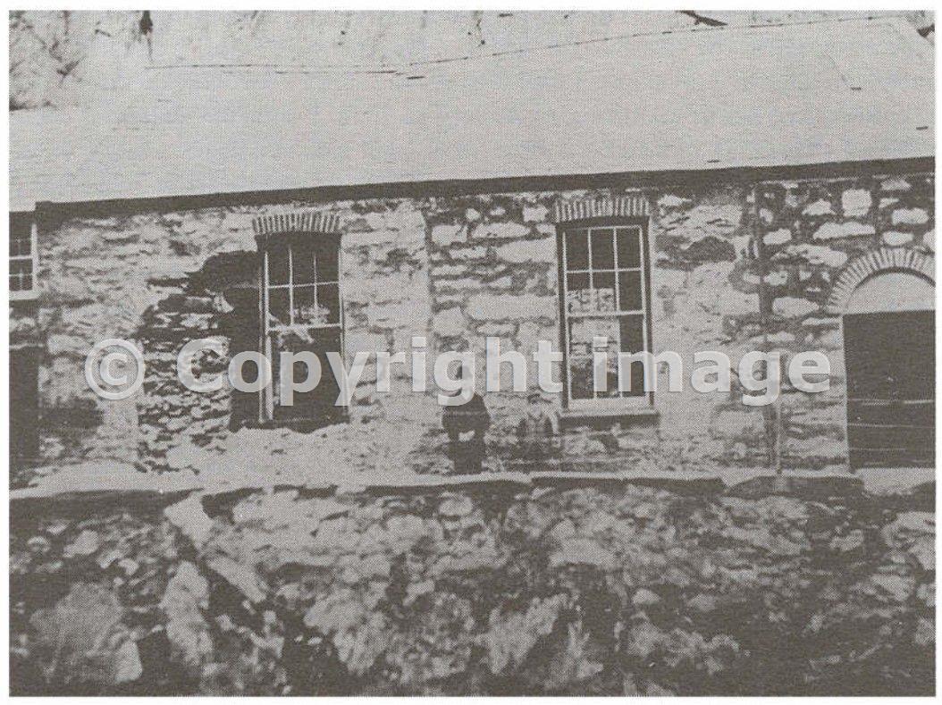 The chapel at Drws-y-coed before the boulder fell through the roof, 1892
