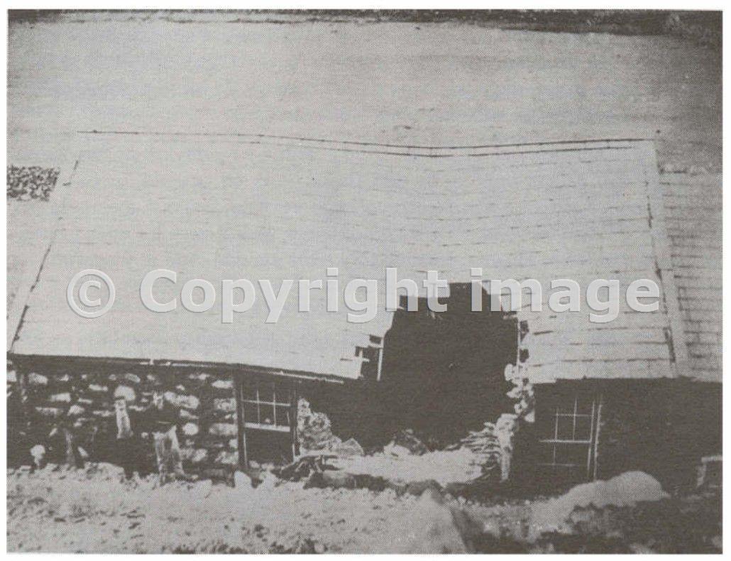 Adjacent to the mine workings, there stood this small chapel with adjoining house (to the right) where in 1892 a boulder of about 20 tons crashed through the back of the chapel. So the story goes... At the time the rock fell, around 5pm, five persons in the adjoining house were preparing a wake for a William Morris who lay in his coffin next door. No one (alive at the time) were hurt. A new chapel with an attached house now stands across the road.