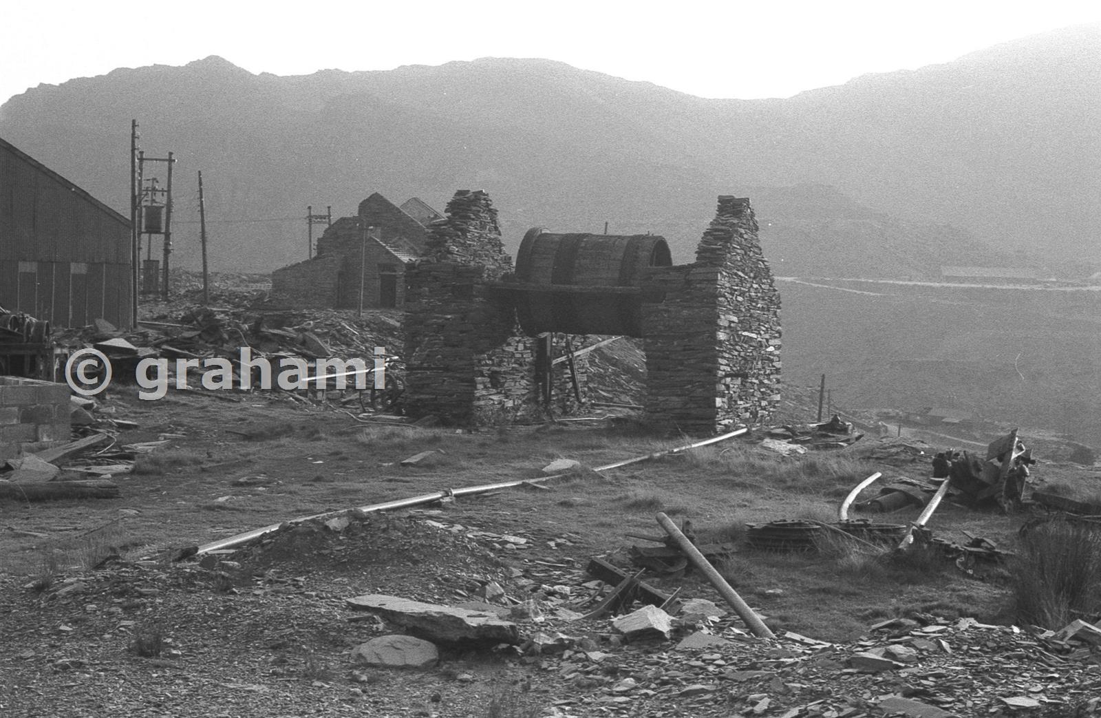 I used to shoot in both mono and colour. Here's the old gravity drumhouse in mono, showing rather more of the remains of the blondin carriage and an anchor or two.