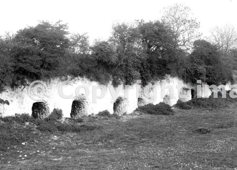 From the NERC photographic collection Photo P203891 Reproduced with the permission of the British Geological Survey ©NERC. All rights Reserved. Photographer J.Rhodes. Caption: The Hooketts, about 1/8 m. S. of Ringwould (W. side of Dover-Deal Road). Looking N. Quarry and caves in Chalk of the Uintacrinus Band.