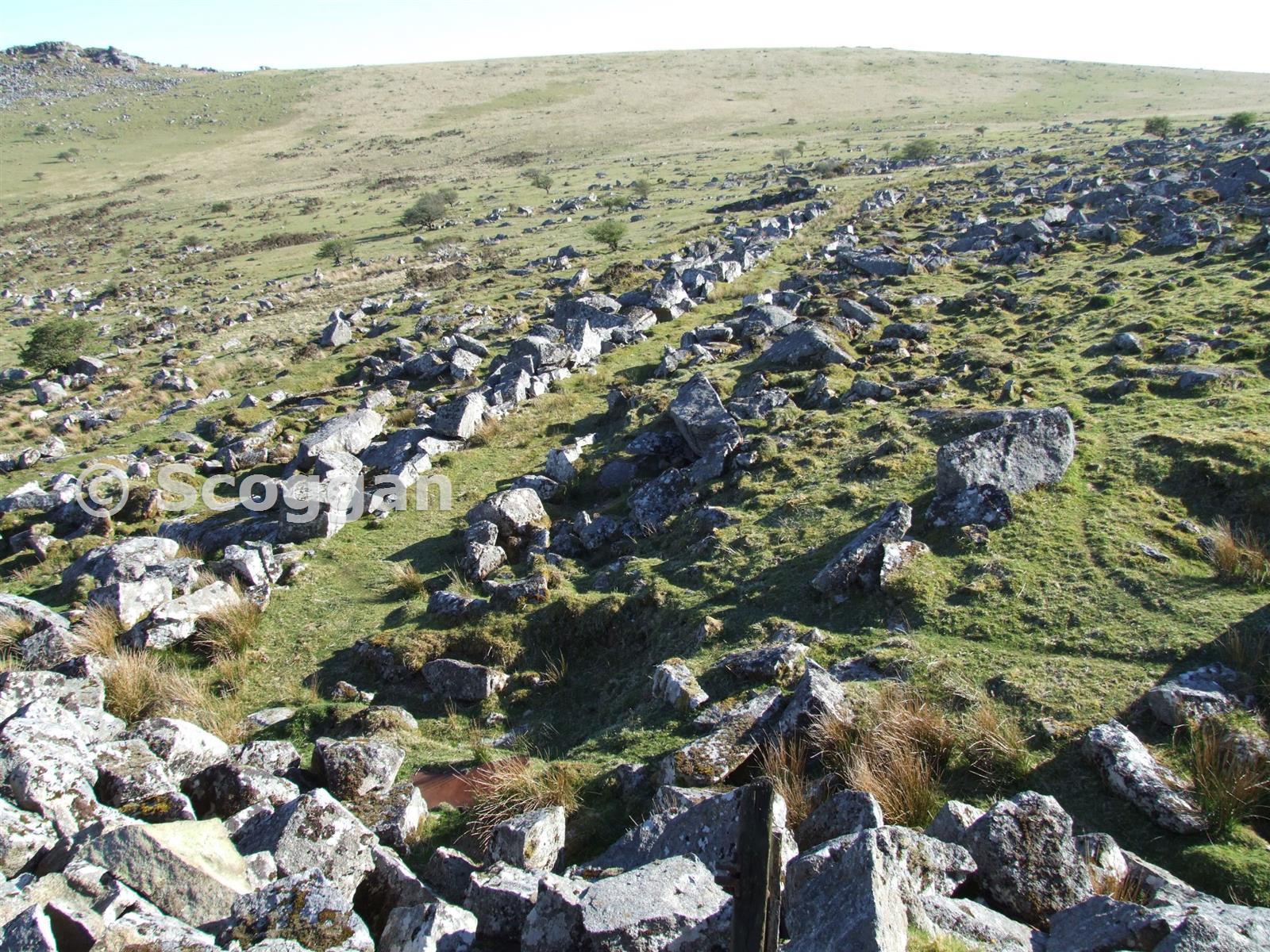098 Looking from the top of the dump, the siding is on the left, The Branch in the centre, note the large loading ramp by the junction. The Bearah Tor Quarry Branch was lifted by the Freeman and Cheeswring Granite Company, the quarry owners, unfortunately we dont know when. 18-05-13.