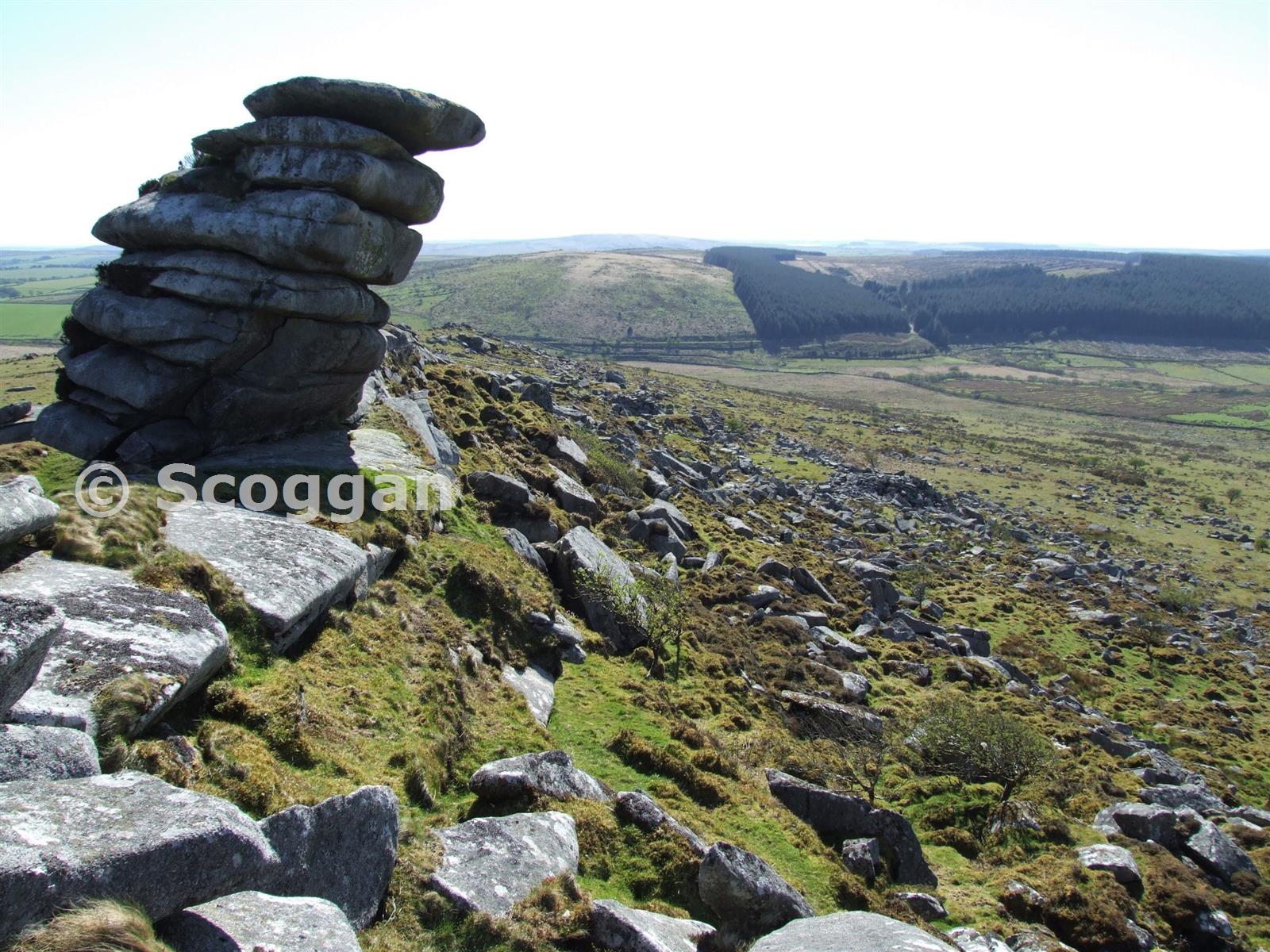 087 High Rock. in the center distance Smallcoumbe Downs. Below this the track bed of the aborted Northan Extention heading towards Rusheyford Gate. 18-05-13.