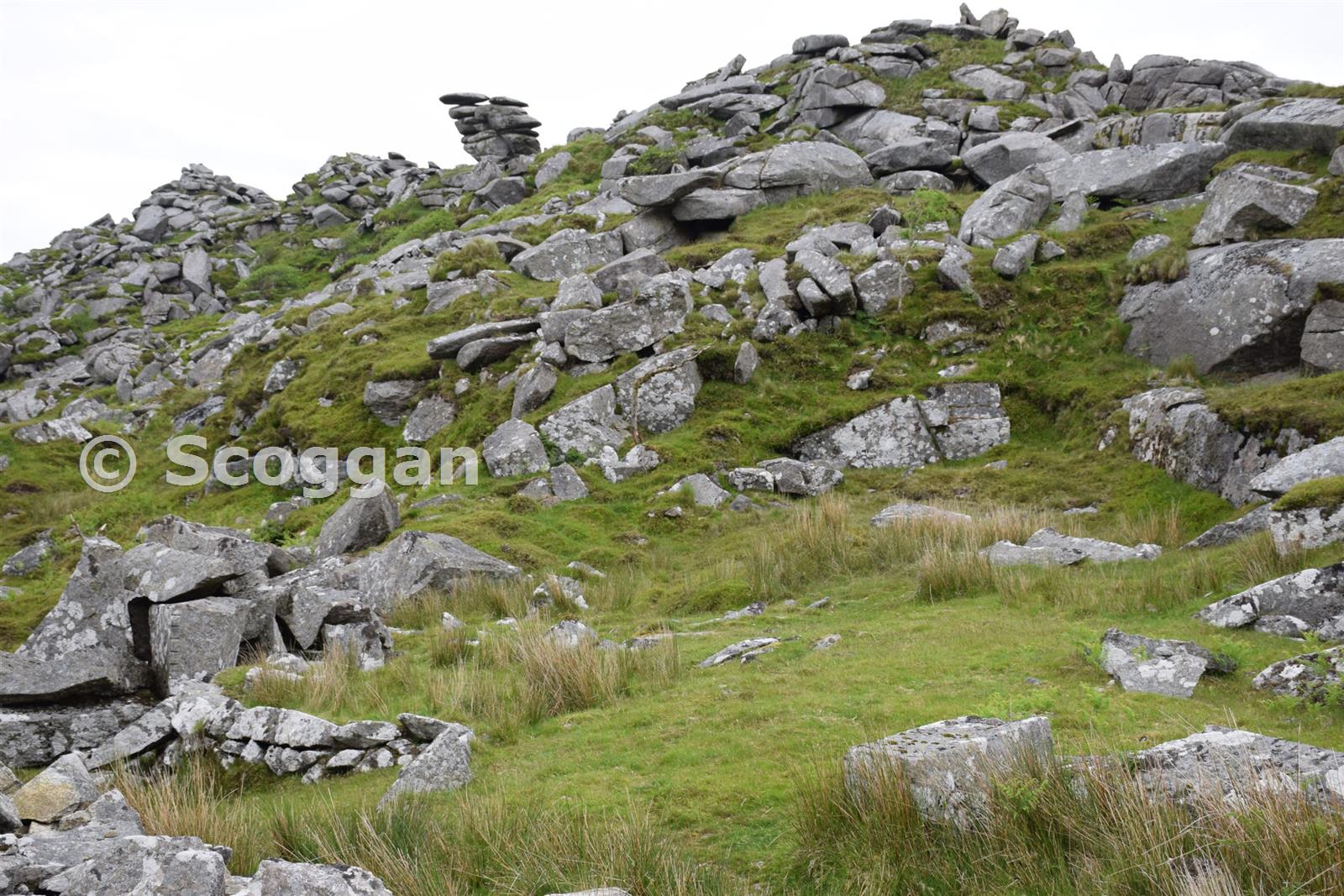 082 At the halfway point down the Incline, hear is the first of the small quarries filled with rubble and clitter. A crane base on the left. 28-05-17.