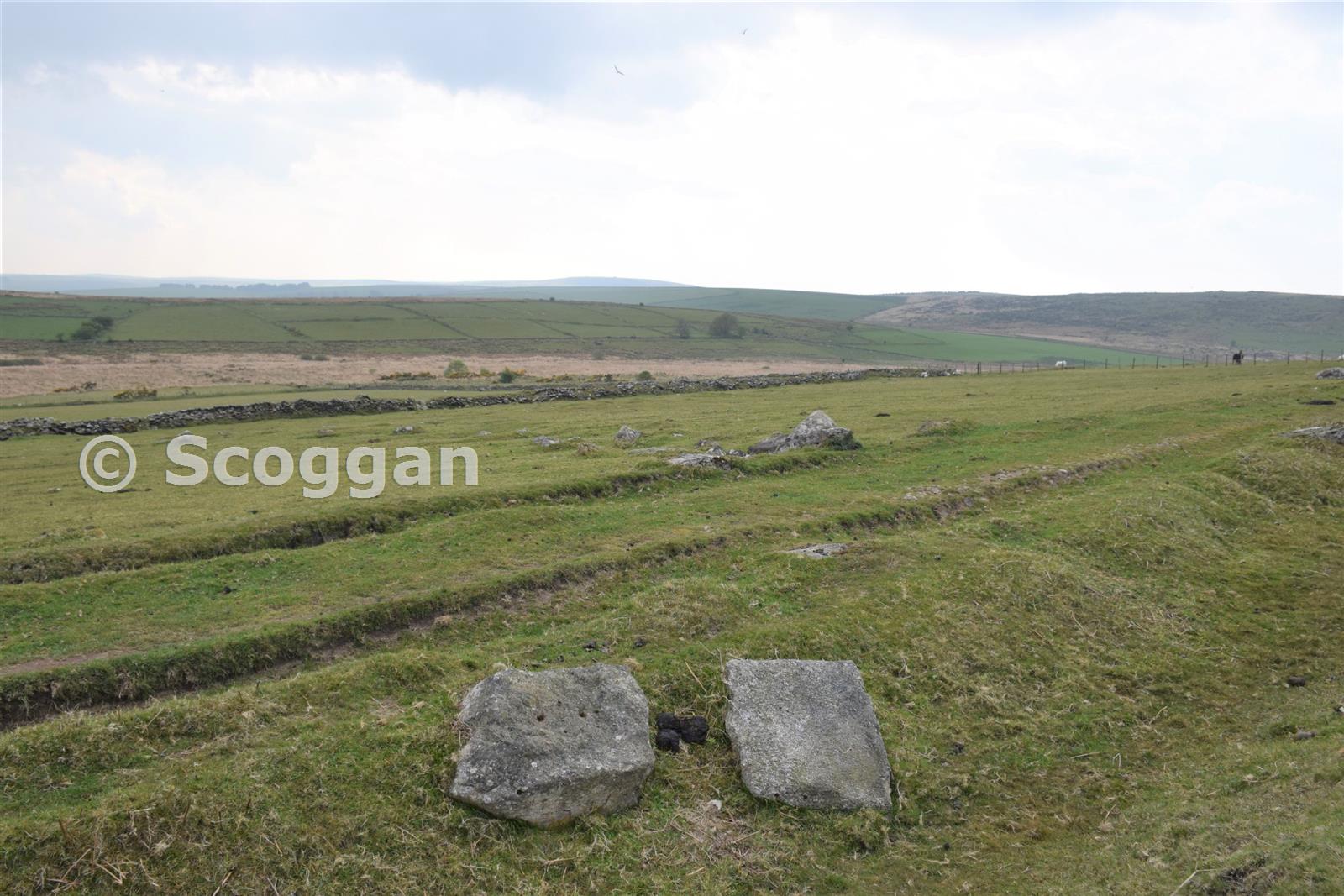 055 One of the few sleeper blocks still by the railway. Looking over Witheybrook Marsh, Newel Tor to the right 1135ft. Approx 2miles from Minions. 07-05-17.