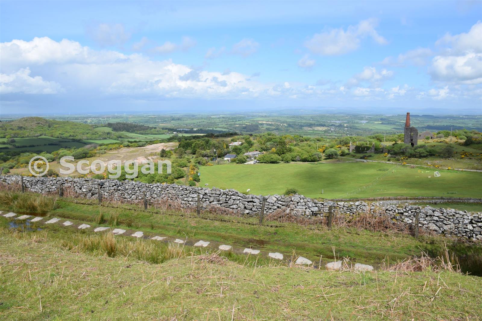 011 A good view of Phoenix United Mine, the Prince of Wales 80in pumping engine house to the right built 1907, the count house and other buildings to the centre, dressing floors ect to the right. Note the ivy clad squar stack sticking out of the trees, this is the stack for West''s Whim this was a 15in Horizontal winding engine. 14-05-17.
