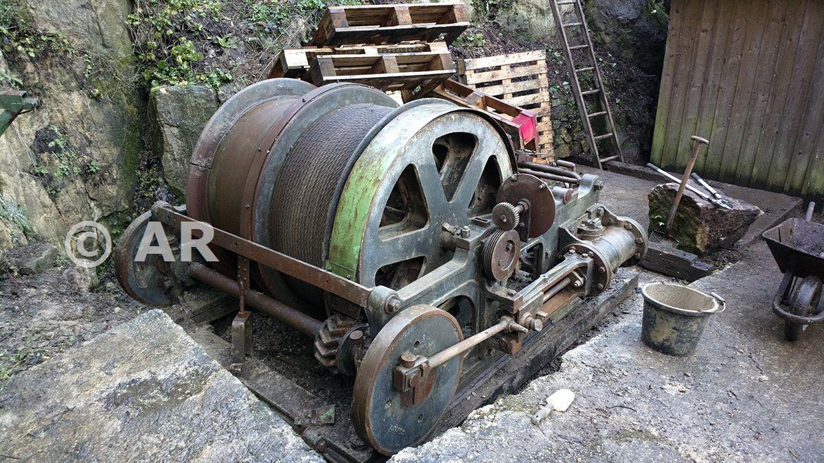 The engine after some initial cleaning work, including taking a lot of gravel out of the winding drum!