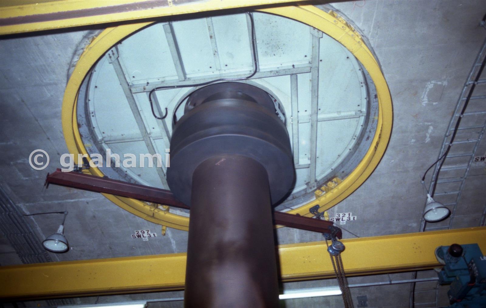 Looking up from the turbine hood towards the generator above. This shaft was turning at 500rpm when I took this.