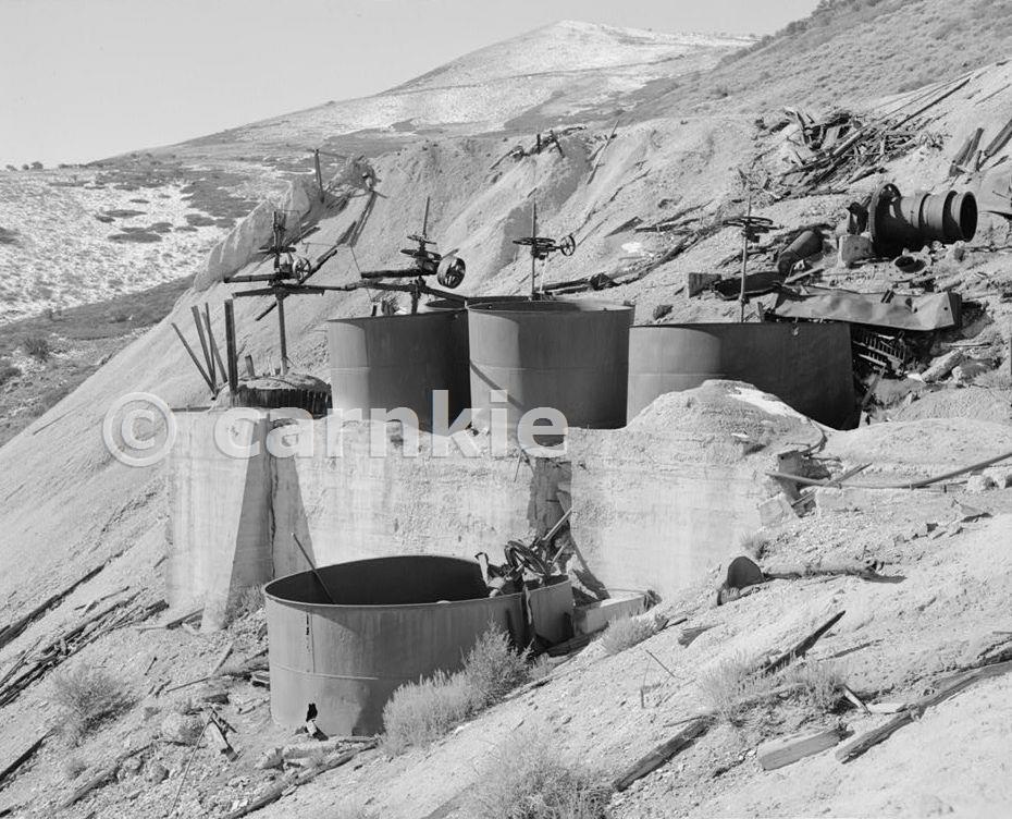 VIEW OF THE MILL, FACING SOUTHWEST. THE AGITATORS AND THICKENING TANKS ARE VISIBLE IN THE FOREGROUND. Courtesy Library of Congress, Prints & Photographs Division, HAER Reproduction number HAER NEV,7-PAVA.V,4J-2