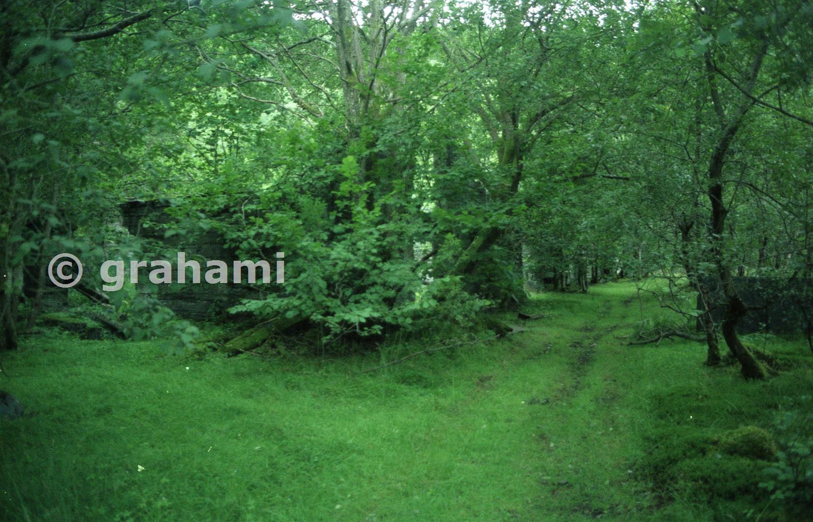 A slightly more distant view than the last, but again looking west along the northern outside wall of the mill. To the left in front of the East wall of the mill was the Sand saw shed.