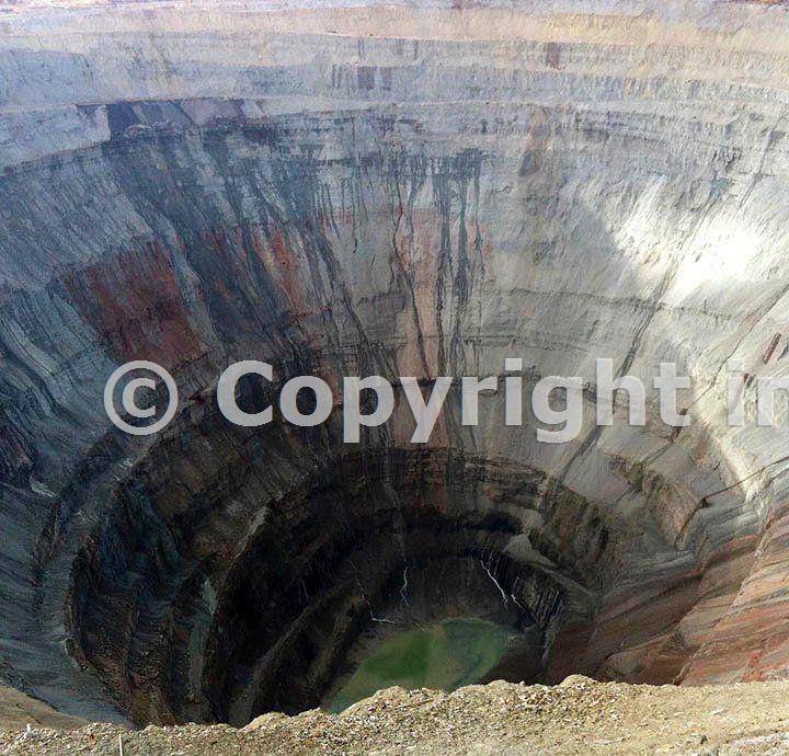 The Mir mine in Yakutia, one of the largest excavated holes in the world (525m deep, diameter 1200m) on an ordinary day and now, blanketed with smoke from wildfires