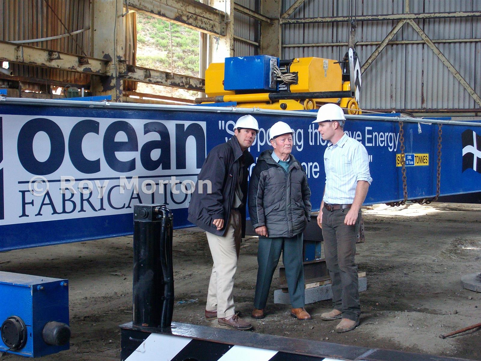 Posing for a photo L to R ,Richard Freeborn Kensa Engineering, John Kellow (ex Mt.Wellington worker), and John Henderson (Ocean Fabrication)