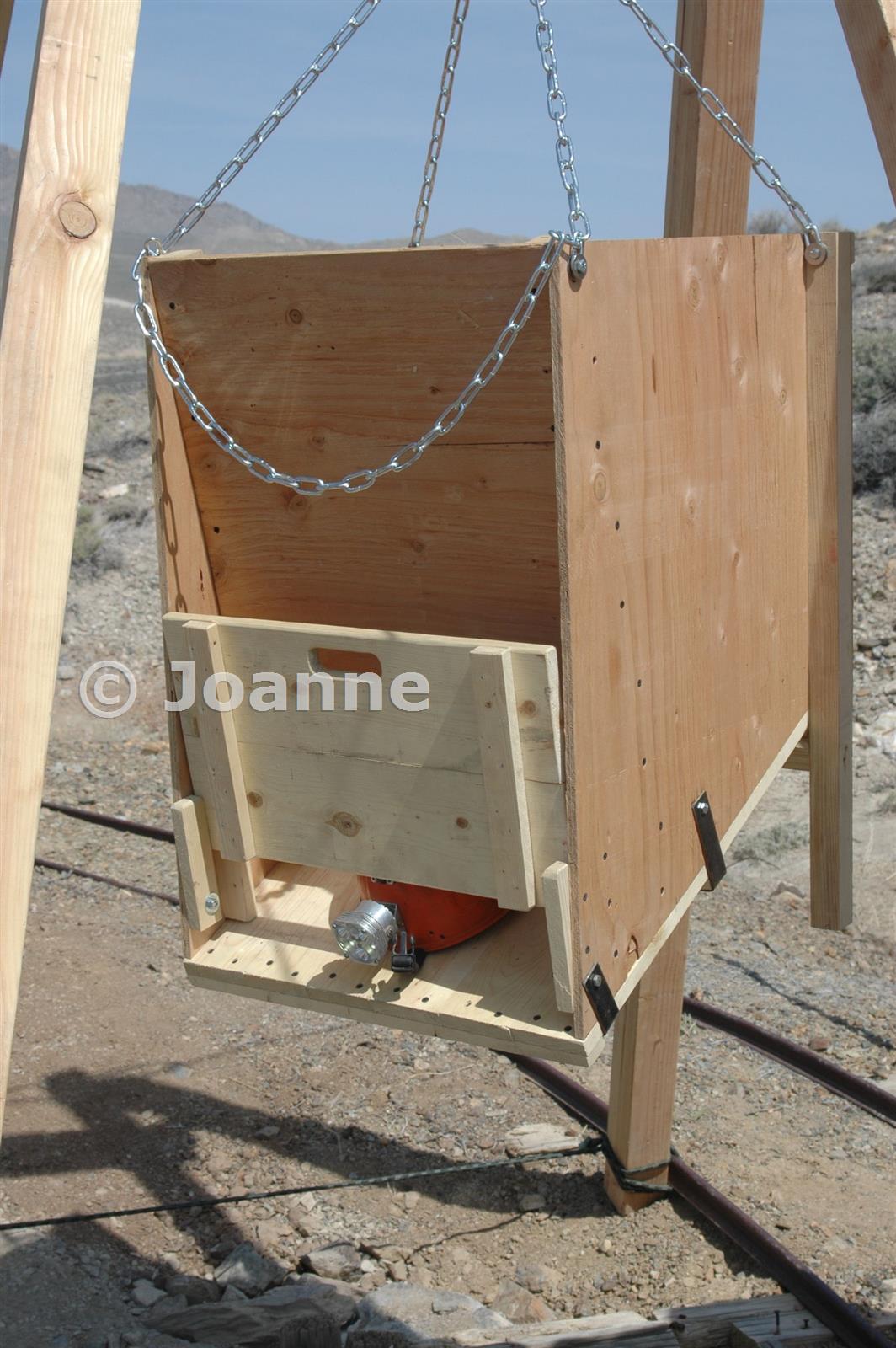 Following the design of ore chutes throughout the west, Speedy built an ore bucket that we use to hall dirt.