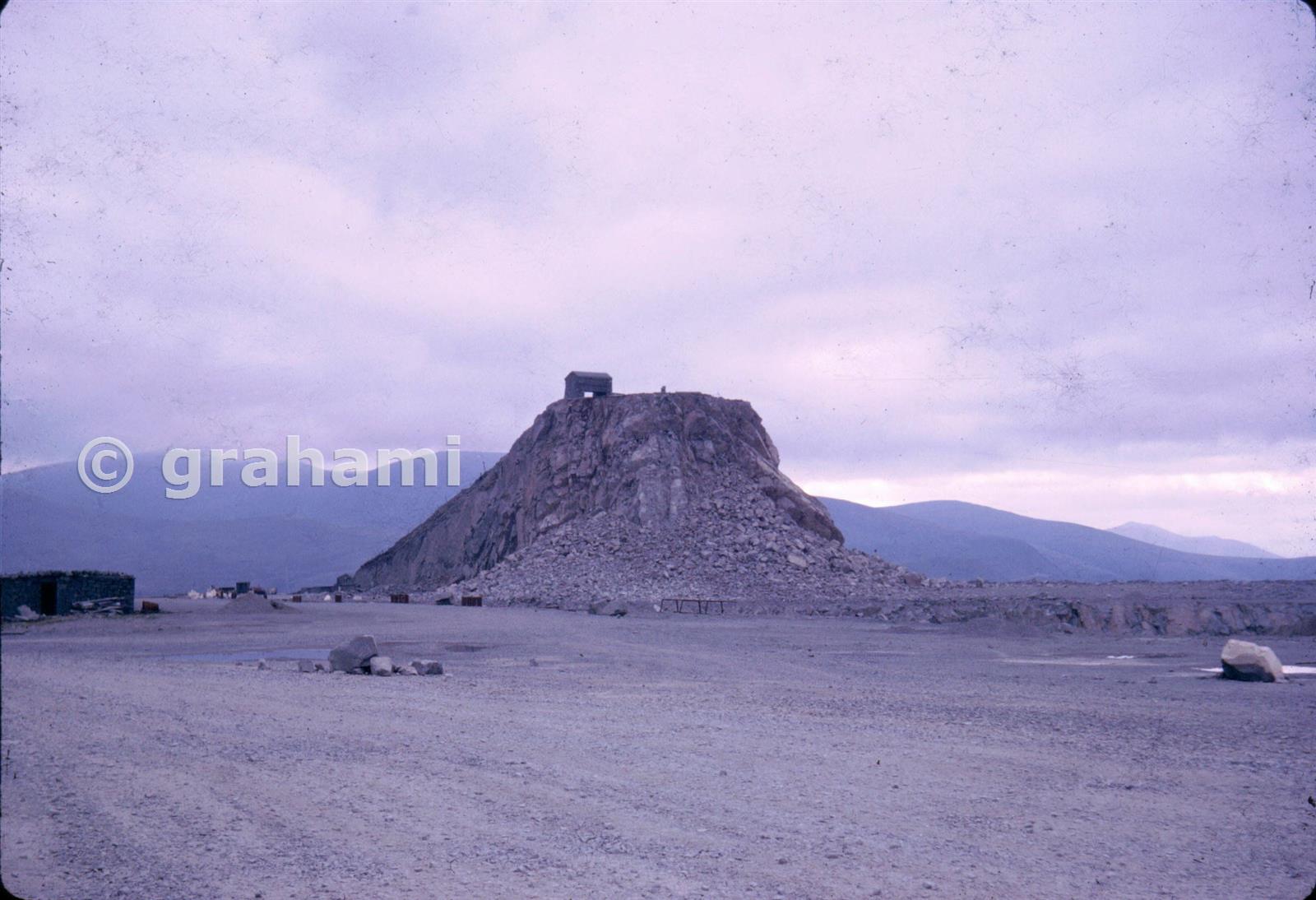 According to the manager, even as they were working away at the mountain, they were always required to leave a distinctive "pimple" on the top as it was a landmark for shipping - something that seems to have been abandoned in more recent times! This was the pimple, all that remained of the next higher floor - you can see the outline of the incline drumhouse on the top.