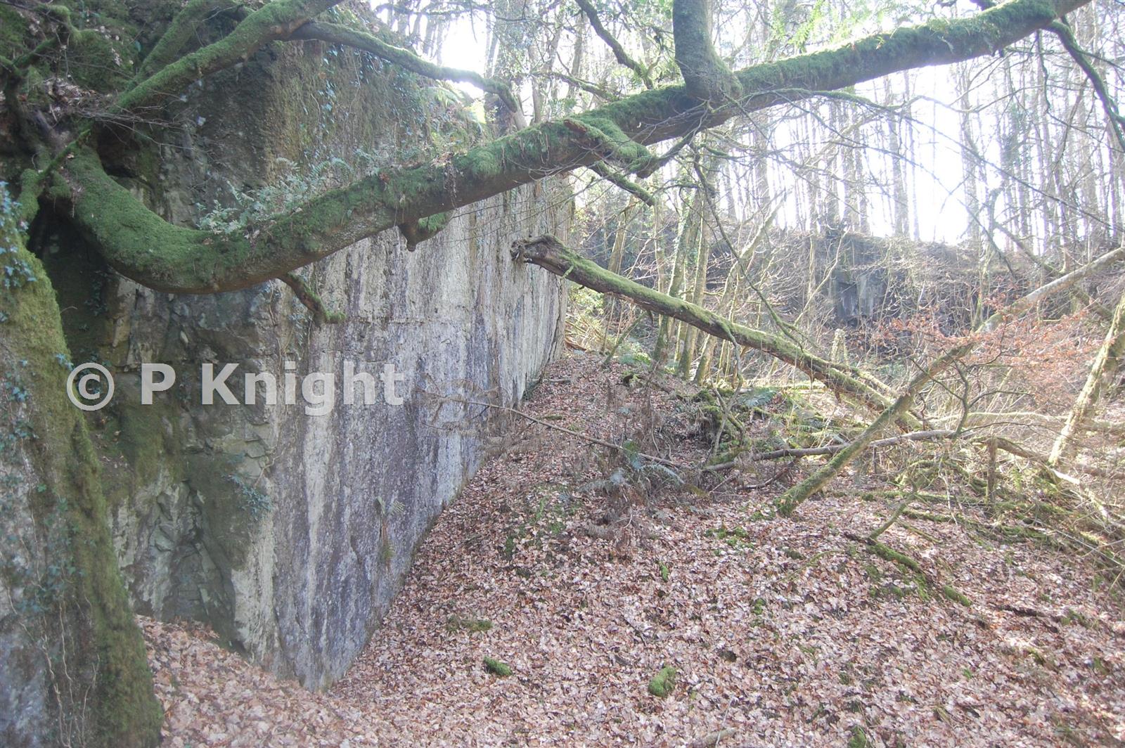 A moderate quarry down slope from the trial level. Lead related or just for the stone?