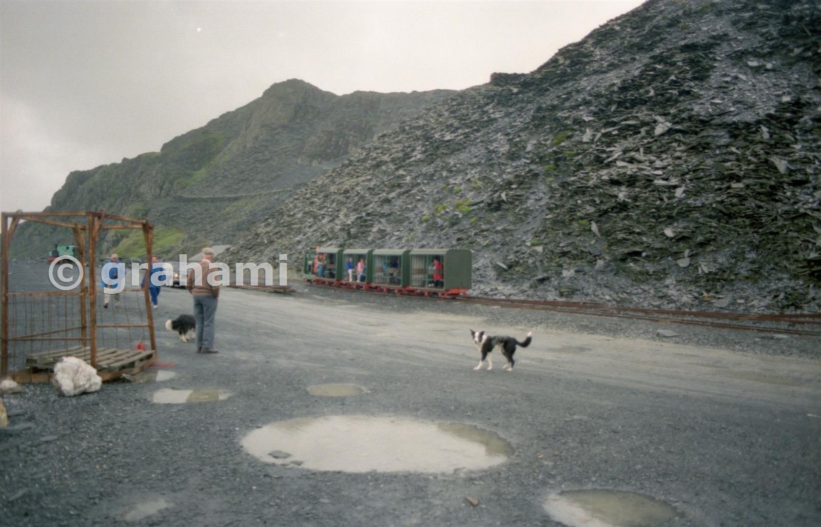 Looking south west towards Hollands lower mill. Through the metal frame you can see the posed loco which was at the top of a short incline which connecetd to the mill. (See photo 13 in this series)