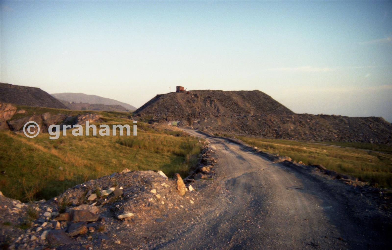 The winch hut sits on the end of the tip which was created by the aerial ropeway between the 1930's and early 1950's when the tip got so high that the ropeway carriage could not traverse the cable anymore with the tipping bucket beneath it.