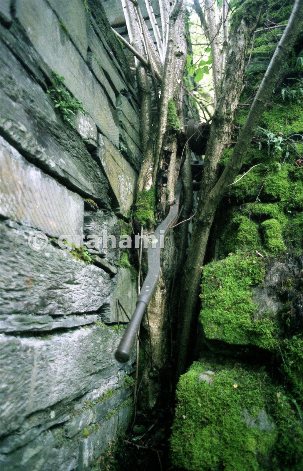 The operating lever for the incline clutch which connected the drum to the mill lineshafting.