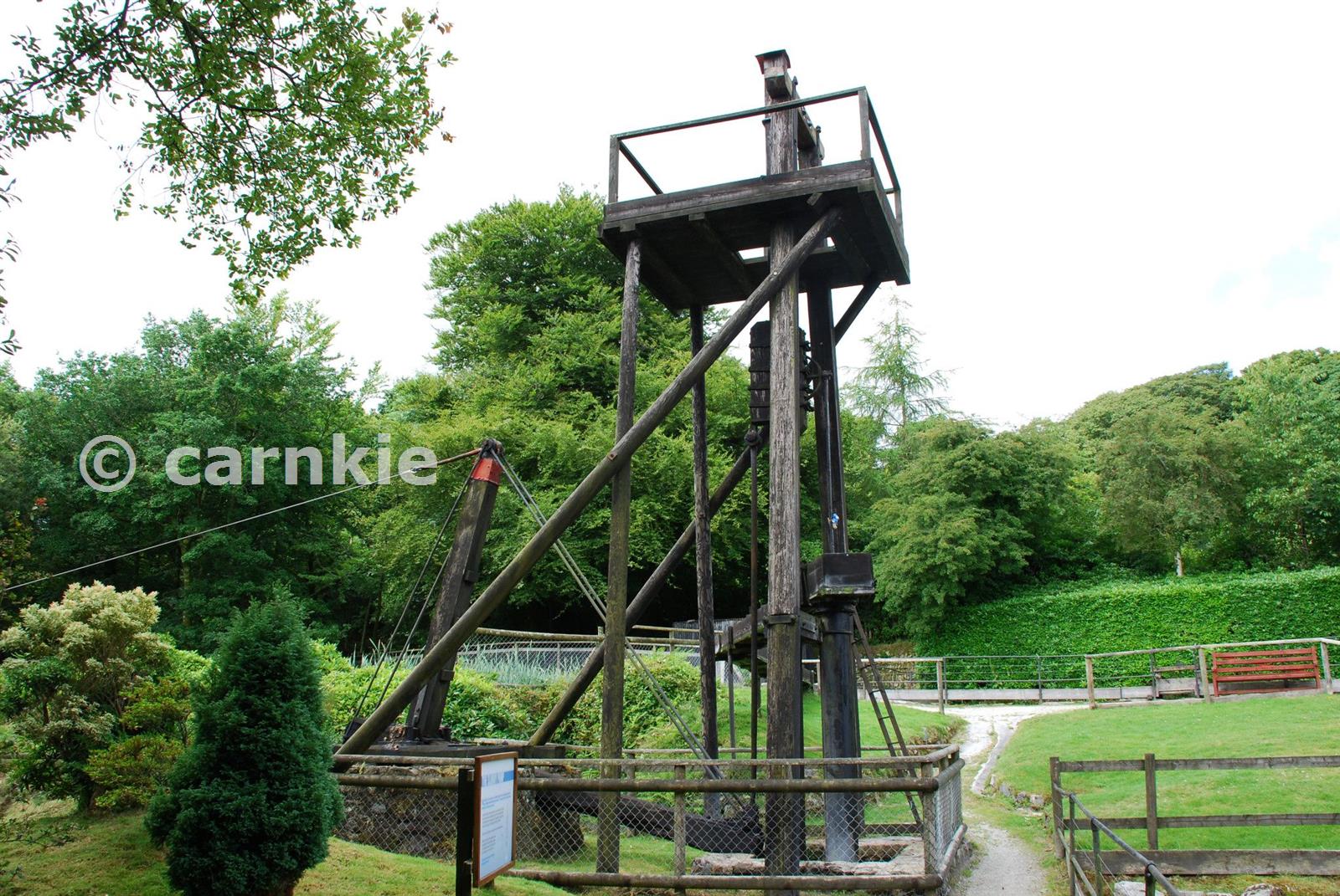 The suck and lift pump was powered by the 18ft water wheel. The slurry arrived at the base and was lifted up the cast iron pipe by a piston to a wooden launder which led it up to two settling tanks at a higher level.