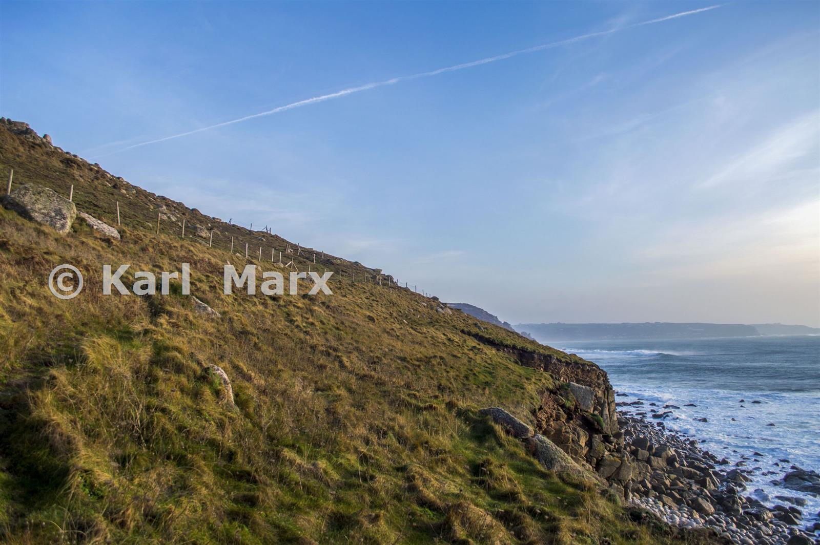 Note the fenced shafts traversing the flank of the coastal slope and the zawn below; this defines the outcrop of the lode recorded as "Wheal Speed" in 1782.