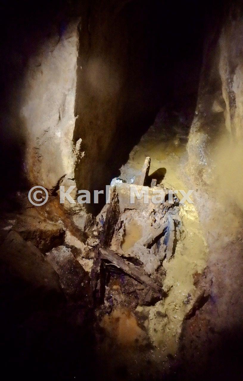 As found at a fork in the deep adit. This almost certainly dates to Autumn 1881; the last working of the mine under the name “New Wheal Penrose”, after the demised family it once belonged to.