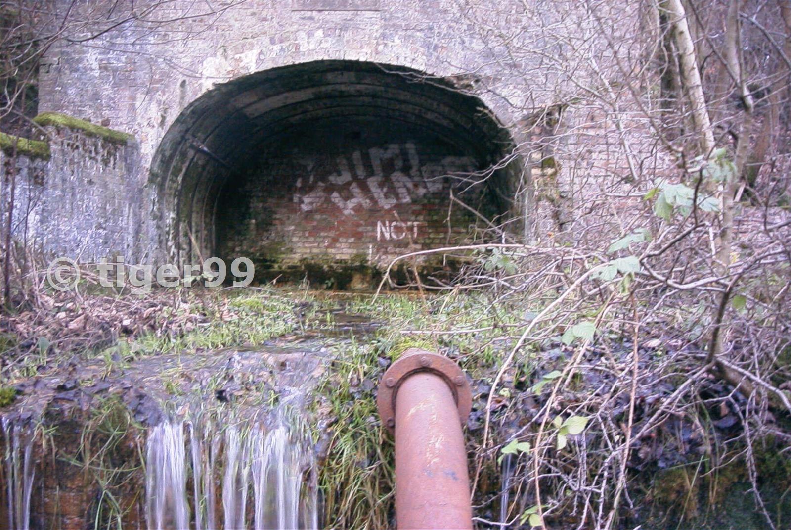 The adit entrance in winter. Note the outflow of water.