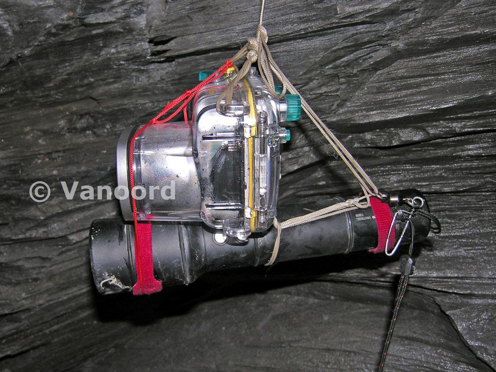 Version 2.0 - WiseLed tied to the bottom of the waterproof camera enclosure.