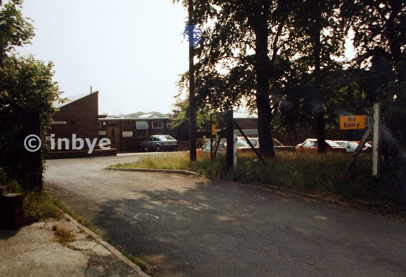 The more unusual view of the way out at Springwood. Medical centre in the background. To the left was the clean entrance to the baths & the canteen. There were also some cycle sheds to the left & the pit bus shelter just out of shot, to the left of the exit.
