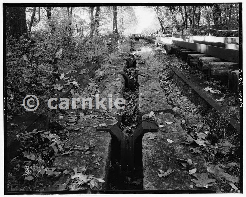 Detail of track and set pulleys on quarry incline. Courtesy Library of Congress, Prints & Photographs Division, HABS , Reproduction no, HABS MASS,11-QUI,4-3