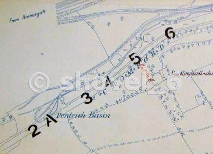 Note track layout around the basin. I suggest this is the original plateway layout before conversion to 'standard guage'.
