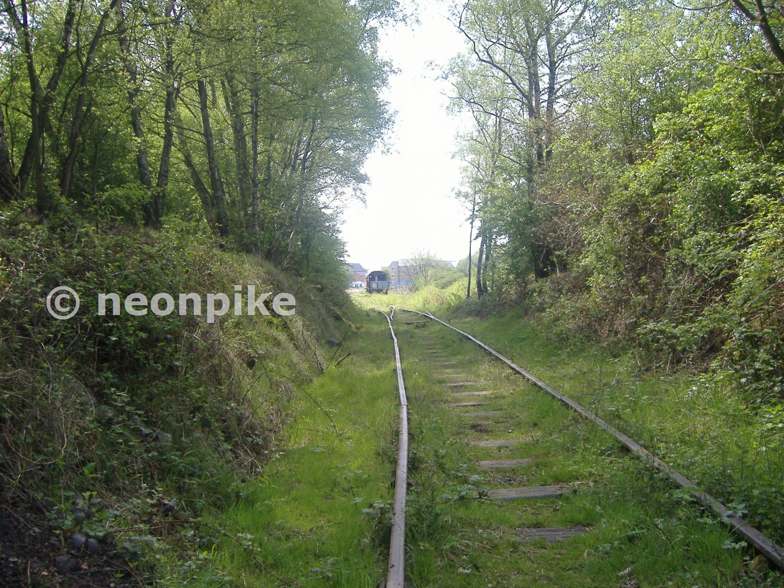 view back up butterley works main line spur , through the last of the sidings towards the new housing developement